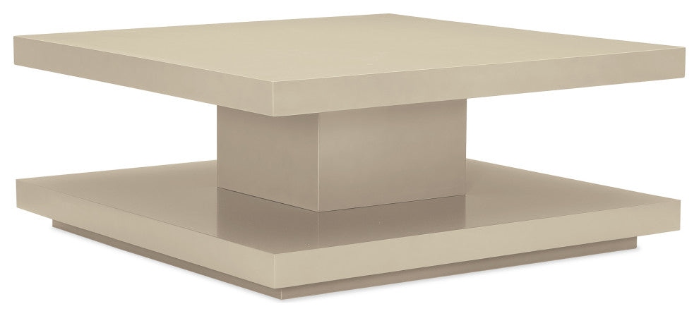 A study in the inherent beauty of simple architecture, this streamlined table boasts a stunning silhouette that''s Cool and Classic. Its linear influences and artful disposition will transform any seating area into a well-designed space. Pair it with an angular, clean-lined sofa for a symmetrical look or contrast it with curvy upholstered pieces for added impact. A classic Pearl finish accentuates its geometric form comprised of a square top and bottom and smaller center base. If you''ve been searching for a refreshing alternative to the classic cocktail table, this is the one.