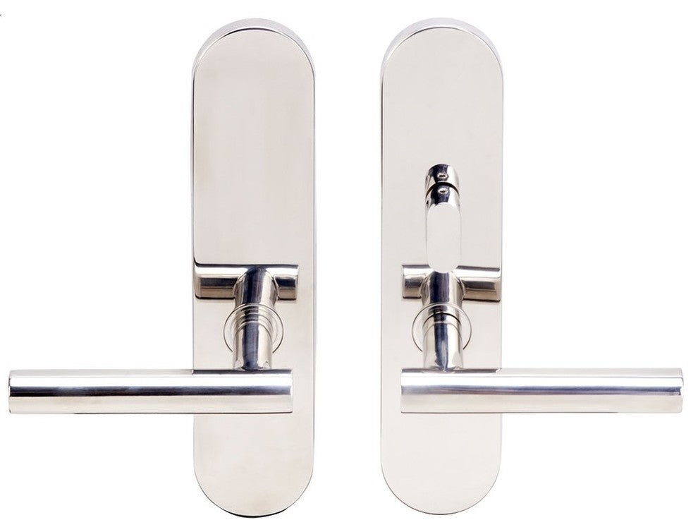 Entry Handleset with LA Plate, 106 Copenhagen Lever, TL4 Tubular Privacy with Latch and Privacy Bolt Set, 2-3/8" Backset, Polished Stainless Steel (US32/629), Right HandStylish, contemporary designStainless Steel construction for long lifeSuitable for most commercial and residential door types 1-3/8"-3"; thick door kits availableConcealed fixings; spring-assisted chassisMultiple escutcheons and functions to suit different applications