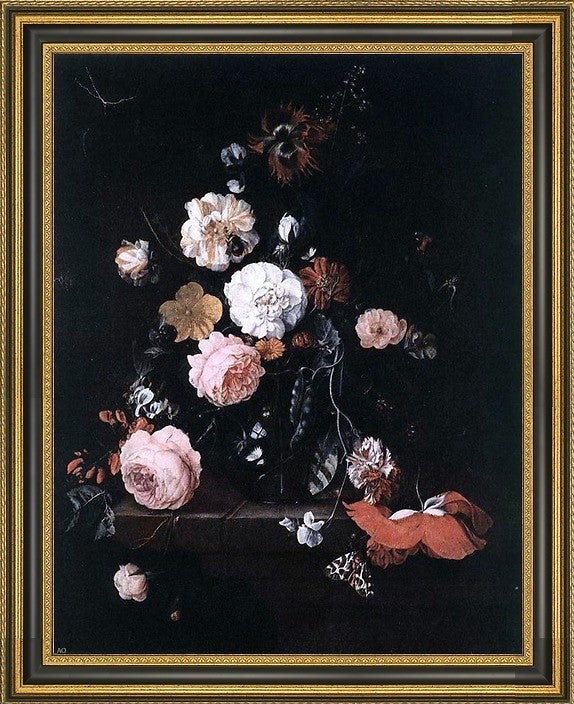 18" x 24" Cornelis De Heem Flower Still-Life framed premium canvas print reproduced to meet museum quality standards. Our Museum quality canvas prints are produced using high-precision print technology for a more accurate reproduction printed on high quality canvas with fade-resistant, archival inks. Our progressive business model allows us to offer works of art to you at the best wholesale pricing, significantly less than art gallery prices, affordable to all. This artwork is hand stretched onto wooden stretcher bars, then mounted into our 3 3/4" wide gold finish frame with black panel by one of our expert framers. Our framed canvas print comes with hardware, ready to hang on your wall. We present a comprehensive collection of exceptional canvas art reproductions by Cornelis De Heem.