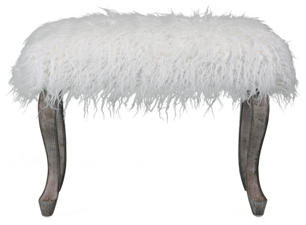 Cortesi Home Harlow Bench Ottoman, White Faux Fur