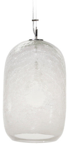 Enhance your interior with the Cosmos, a sleek pendant from our artisanal lighting collection. Crafted from hand-blown glass with a unique crackle finish, this fixture seamlessly fits into any décor. Choose from a variety of decorator colors for a stunning accent lamp. This collection is created by Tempo Luxury Home in New York. The organic process of hand-blowing makes each pendant unique.7" W X 13" H; 5" canopy. 60w; 120v. Edison-style filament bulb included. Ships with 6 ft. of electrical cord.