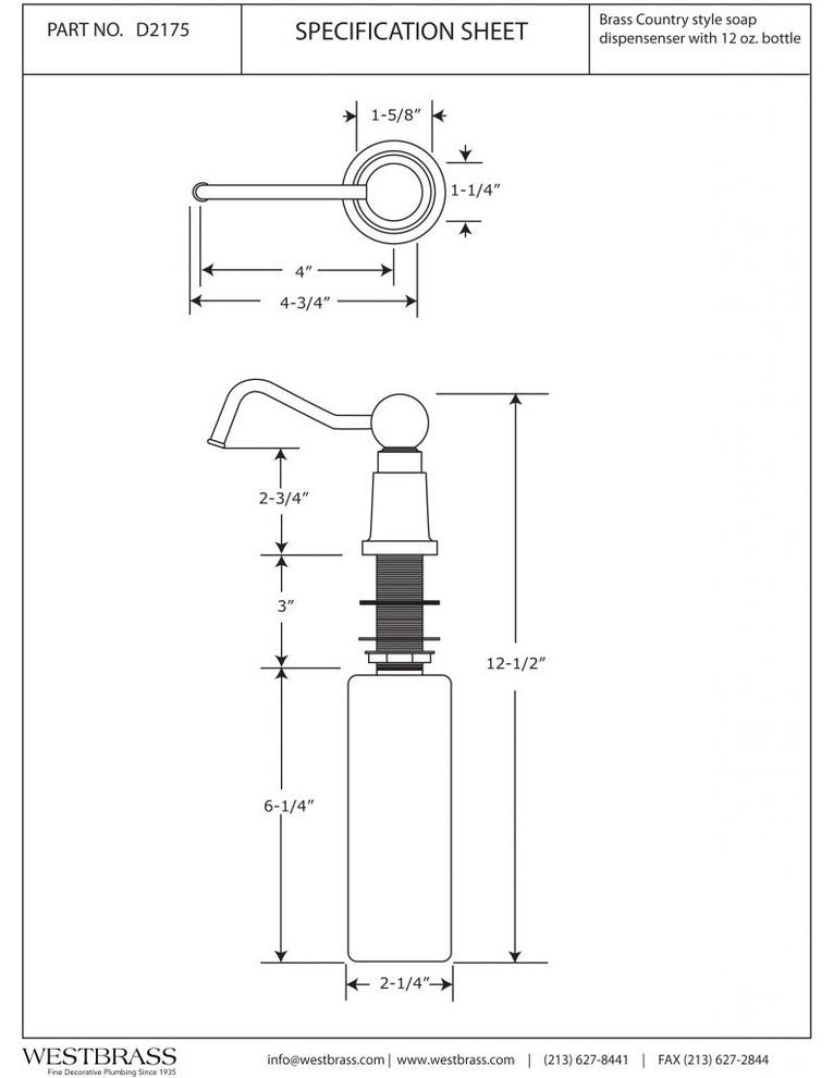 This premium finish, rounded Country style soap and lotion dispenser is THE solution for your decorative bathroom or kitchen! The subtle elegance of its classic, spherical design makes it the perfect finishing touch! Refillable from above without any complicated disassembly. Features solid brass spout and escutcheon. You''ll be able to appreciate both the beauty and performance of this item for years to come thanks to superior quality finishing and solid construction. Compliments many kitchen faucet manufacturer products.