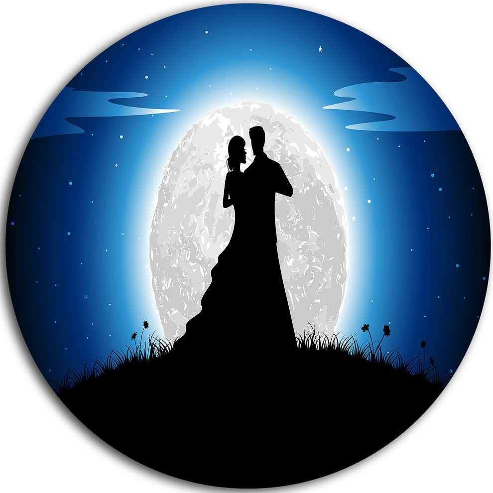 Couple Embrace In Night, Romance Art Round Metal Wall Art, 36"