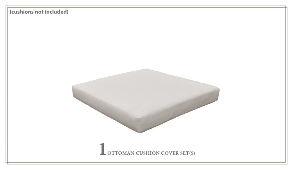 This listing does NOT include cushions. Specifically designed to fit the Monterey, Monaco, and Belle Collections. Choose from a selection of beautiful colors to cover your outdoor furniture! Simply slip these over your existing cushions for a whole new look.(1) Ottoman Cover 31.5" W x 31.5" D x 4" Thick