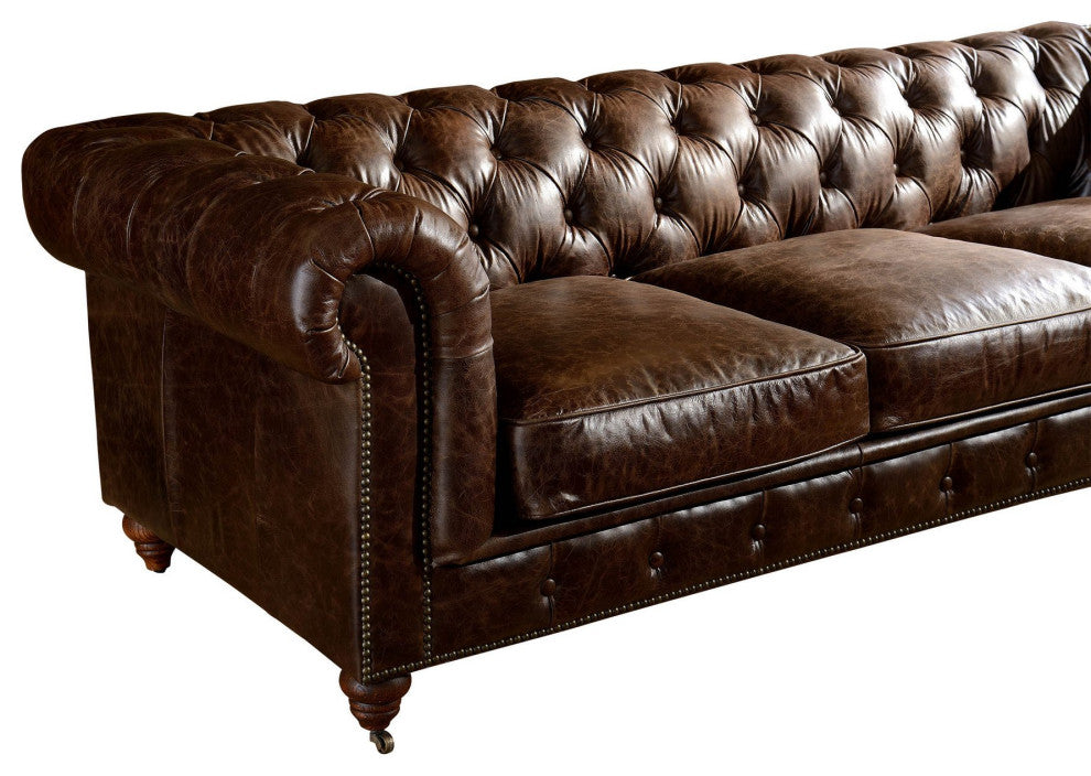 Crafters and Weavers Top Grain Leather Chesterfield Sofa, Dark Brown