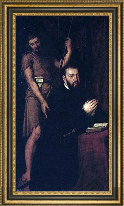 15" x 30" Cristovano Lopes Portrait of Don Joao III framed premium canvas print reproduced to meet museum quality standards. Our Museum quality canvas prints are produced using high-precision print technology for a more accurate reproduction printed on high quality canvas with fade-resistant, archival inks. Our progressive business model allows us to offer works of art to you at the best wholesale pricing, significantly less than art gallery prices, affordable to all. This artwork is hand stretched onto wooden stretcher bars, then mounted into our 3 3/4" wide gold finish frame with black panel by one of our expert framers. Our framed canvas print comes with hardware, ready to hang on your wall. We present a comprehensive collection of exceptional canvas art reproductions by Cristovano Lopes.