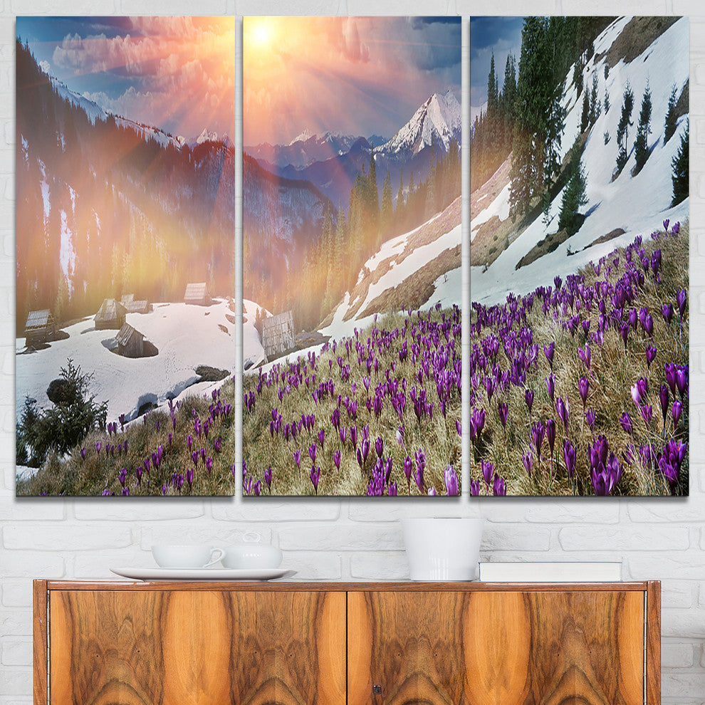 "Crocus Flowers in Carpathians" Photo Canvas Print, 3 Panels, 36"x28"