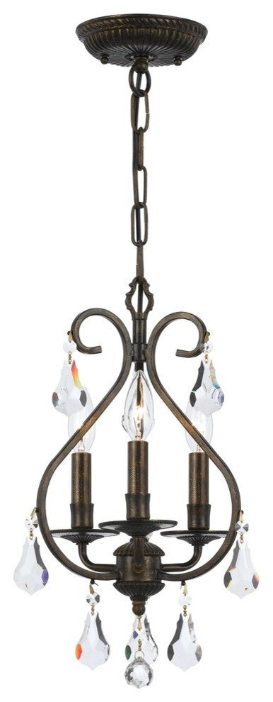 Crystorama 5013-EB-CL-MWP Ashton 3 Light Hand Cut Crystal Bronze Mini Chandelier. Grace never goes out of style. Ashton is a collection designed for today, tomorrow and everyday. It takes the notion of a crystal chandelier beyond traditional. Features include modern hand painted finishes in English Bronze or Olde Silver, graceful lines and updated crystal shape.