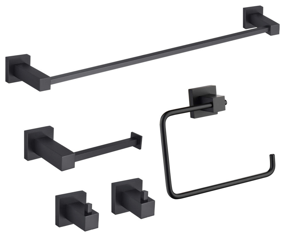Cube 5-Piece Bathroom Hardware Set, Matte Black