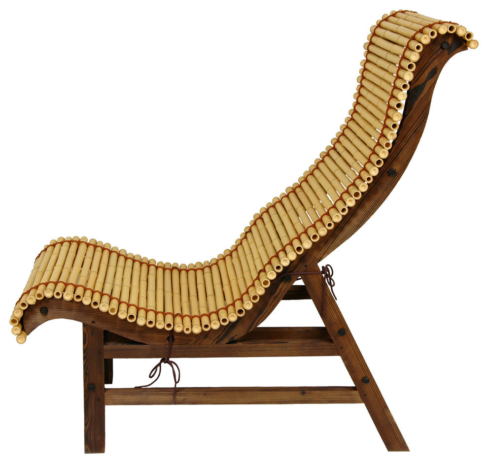 Japanese Design - Handcrafted from whole and split bamboo, this unique Asian-style rustic chair offers a distinctive alternative to the American Adirondack chair, adding an exotic touch to any outdoor space.