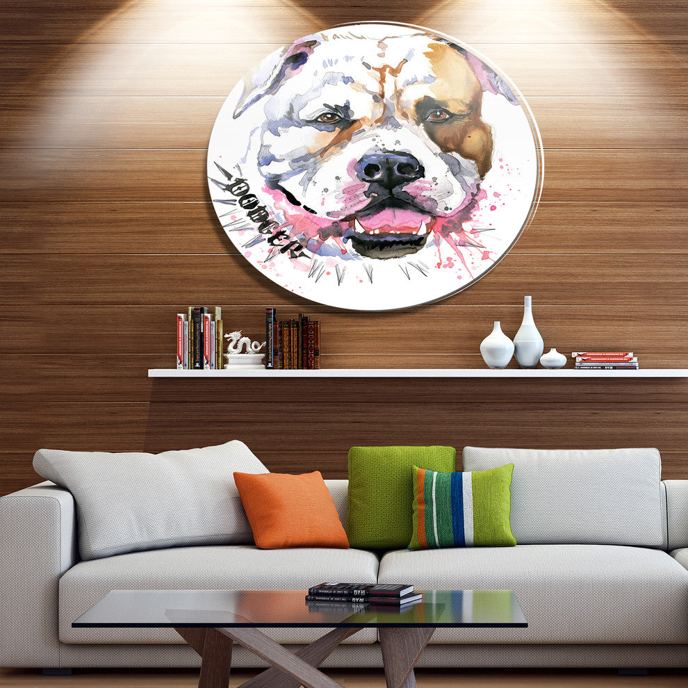 Bring Contemporary Abstraction to your home with this large Circle Metal wall art. This Cute Dog with Open Mouth Metal Artwork makes it the focal point of any room or office.