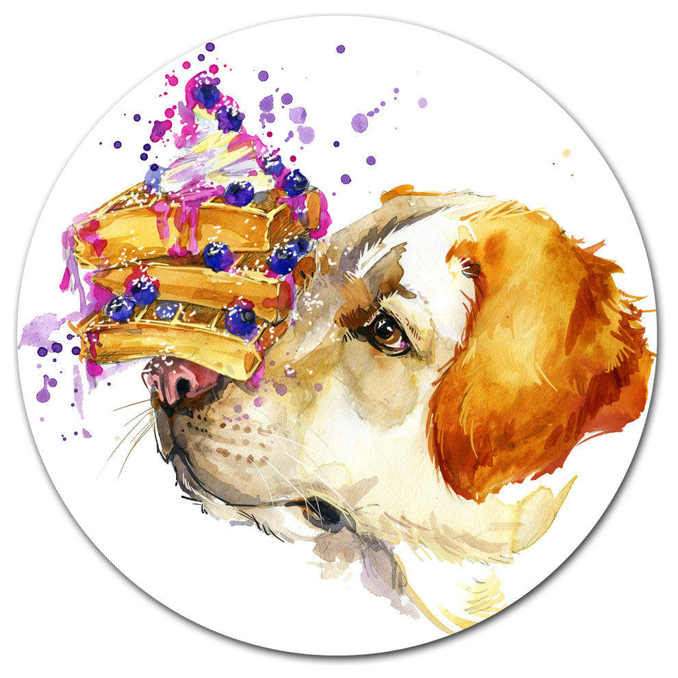 Cute Labrador Dog Watercolor, Animal Round Wall Art, 11"