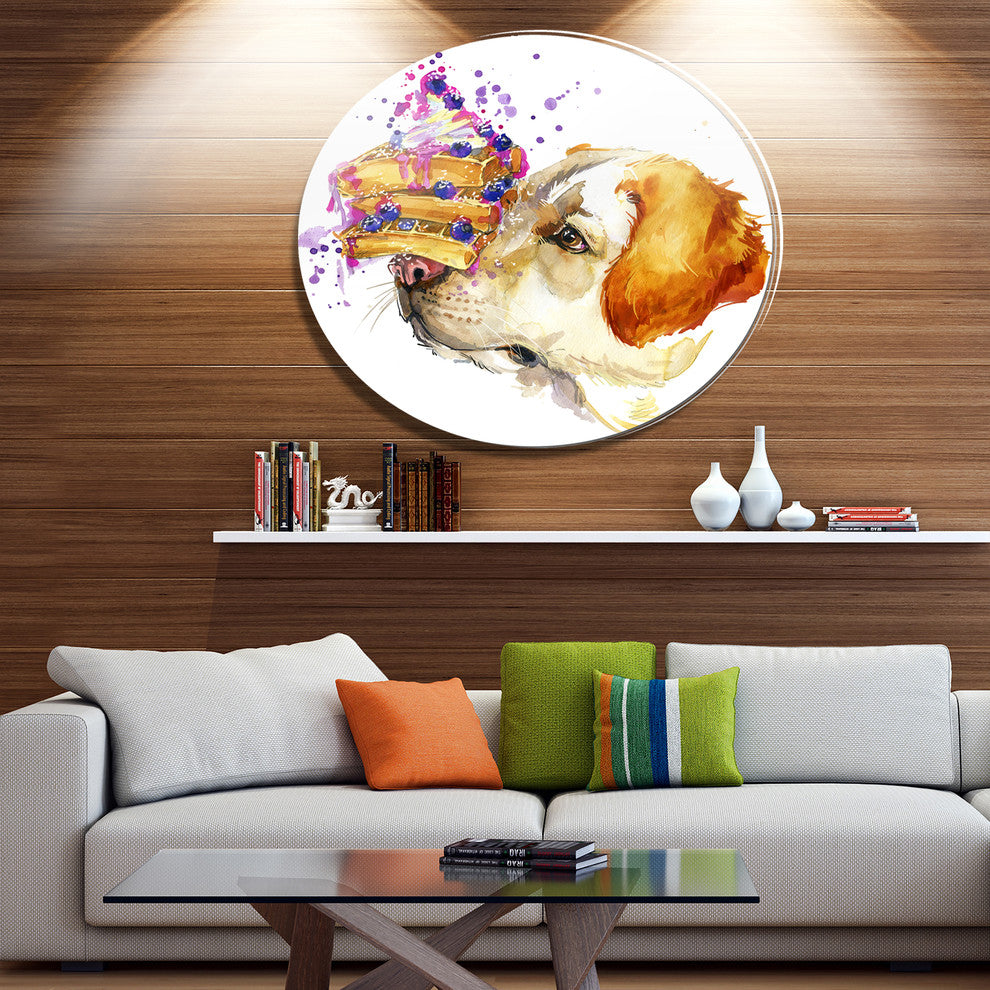 Bring Contemporary Abstraction to your home with this large Circle Metal wall art. This Cute Labrador Dog Watercolor Metal Artwork makes it the focal point of any room or office.