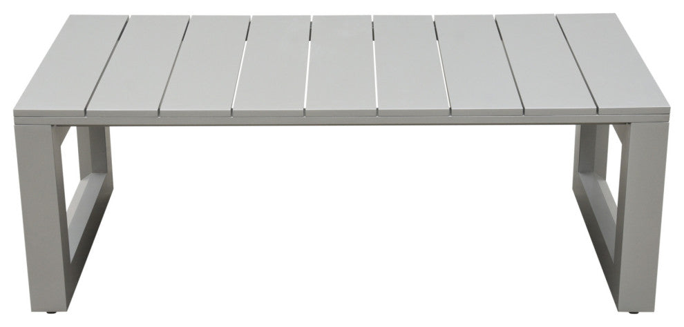 Neutral contemporary style in an outdoor set that will make your patio a showcase. This Cocktail Table looks like it was sculpted for the great outdoors with beveled end panels that frame a modern geometric pattern. And although it looks like an indoor item, this table is built for the outdoors with a rust resistant aluminum frame that is also scratch and weather resistant.