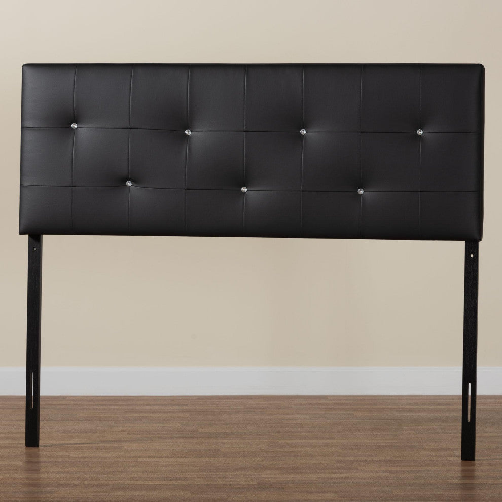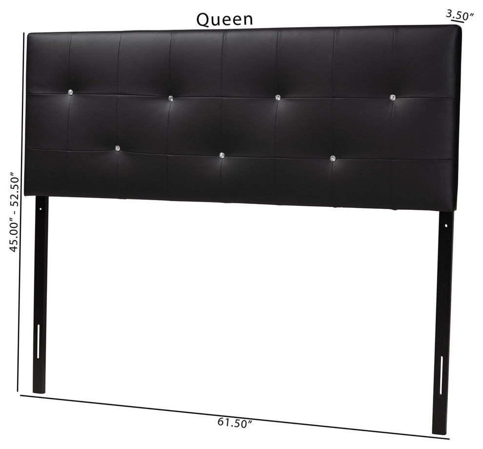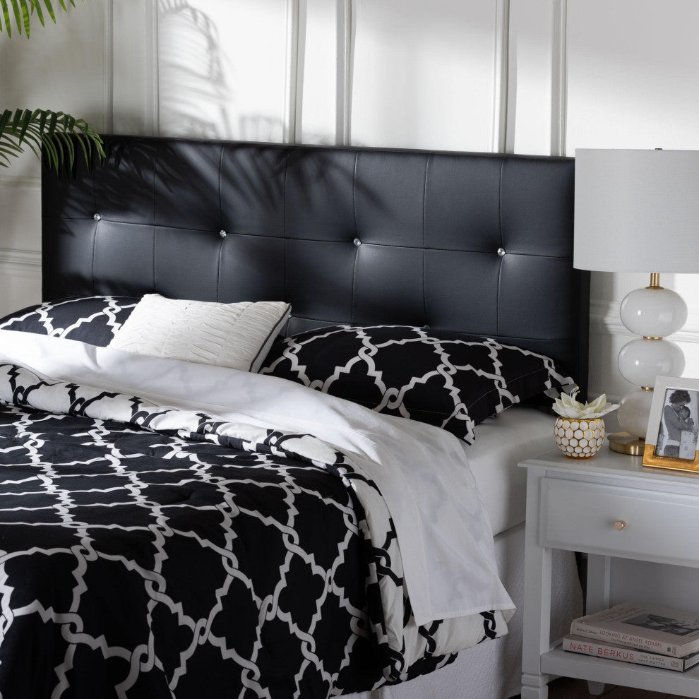 Dalini Queen Black Faux Leather Headboard With Faux Crystal Buttons