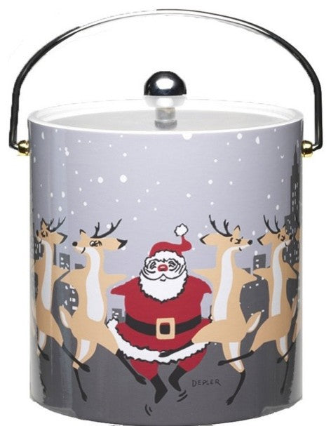 "Dancing Santa" Insulated Ice Bucket, Silver Handle