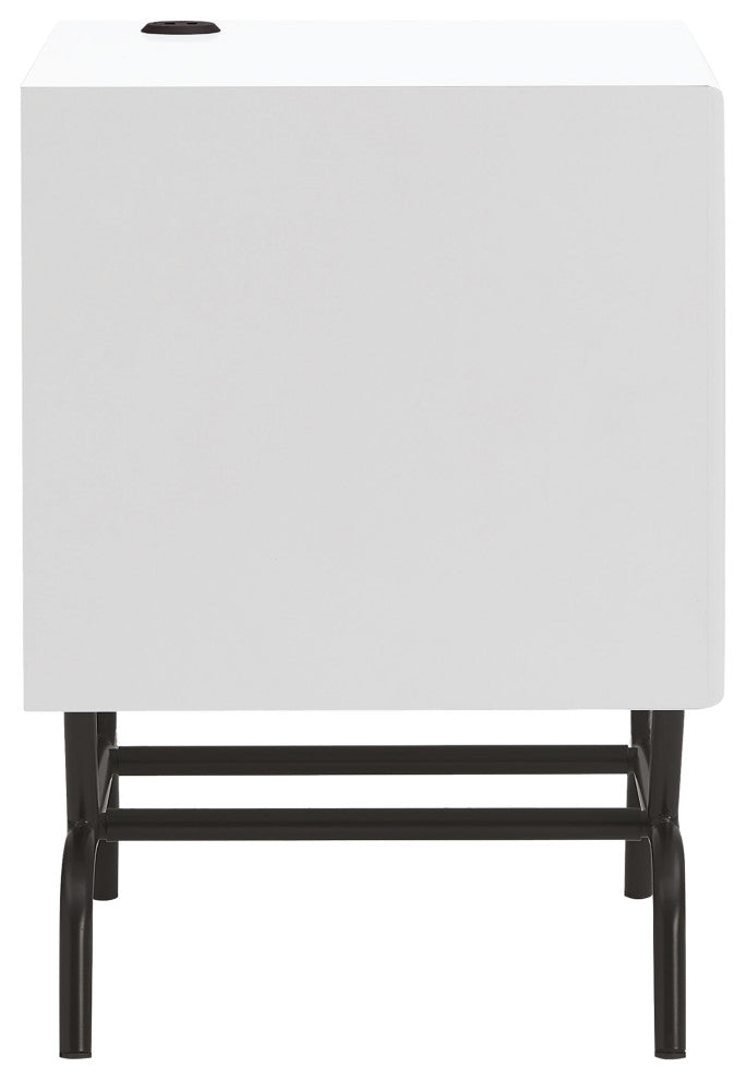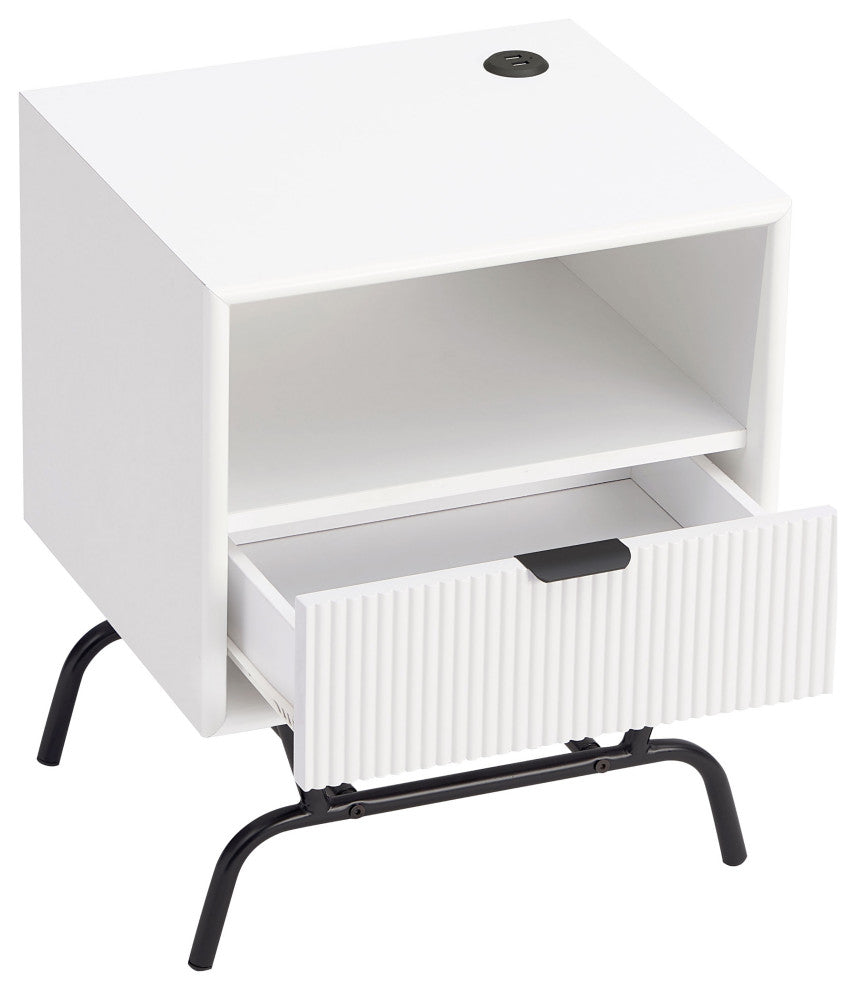 Danel Modern 18" Rectangle End Table With Drawer and USB Ports, White