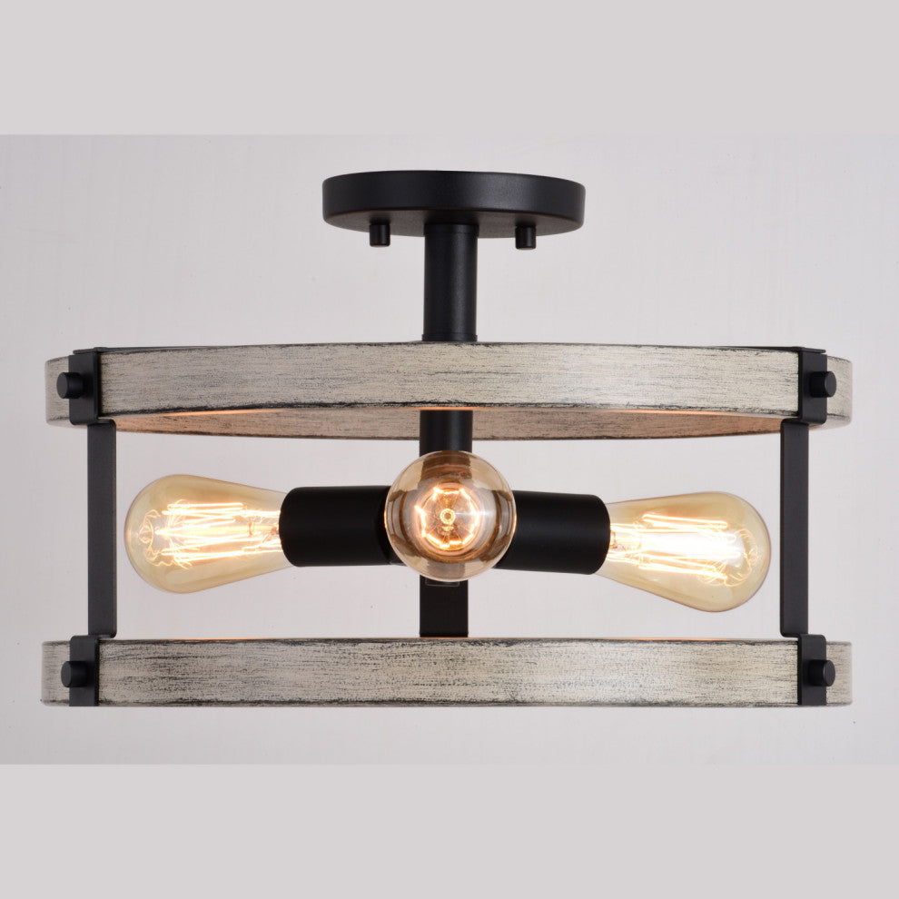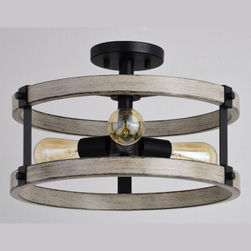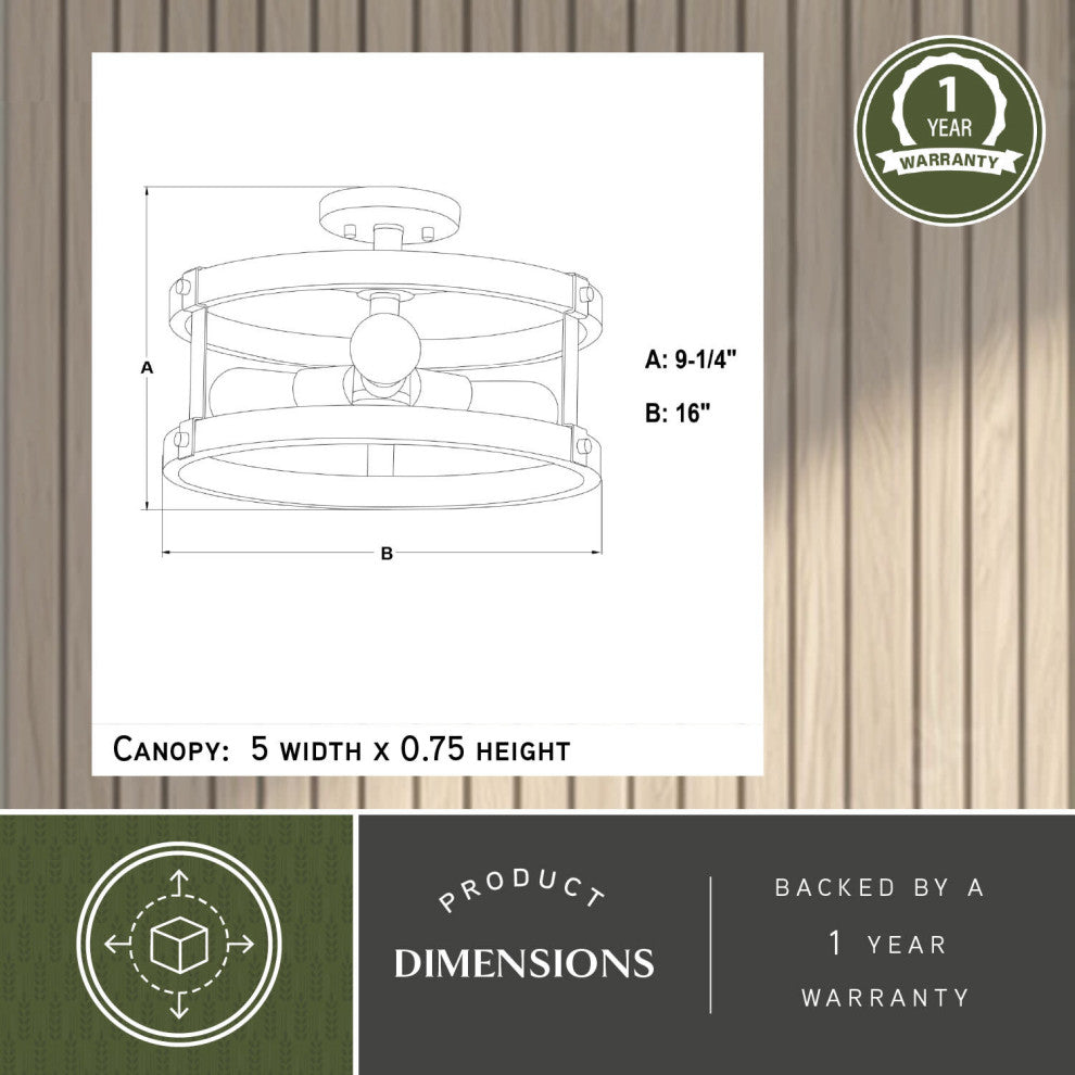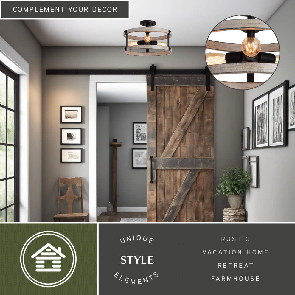 Add farmhouse style throughout your home with the Danvers collection. A pair of rings supported by riveted metal straps form an open drum shape. The textured black and weathered gray finish combine to offer a striking contrast. Ideal for use in any entryway, hallway, kitchen, or bedroom.