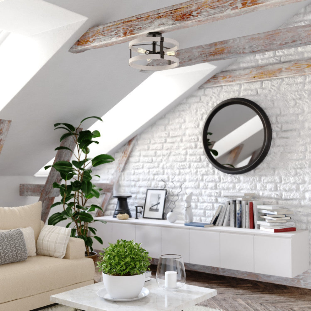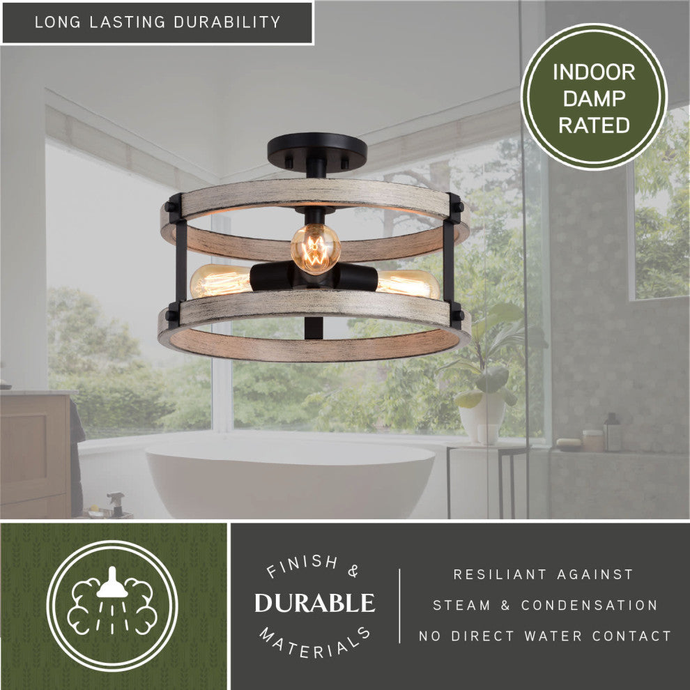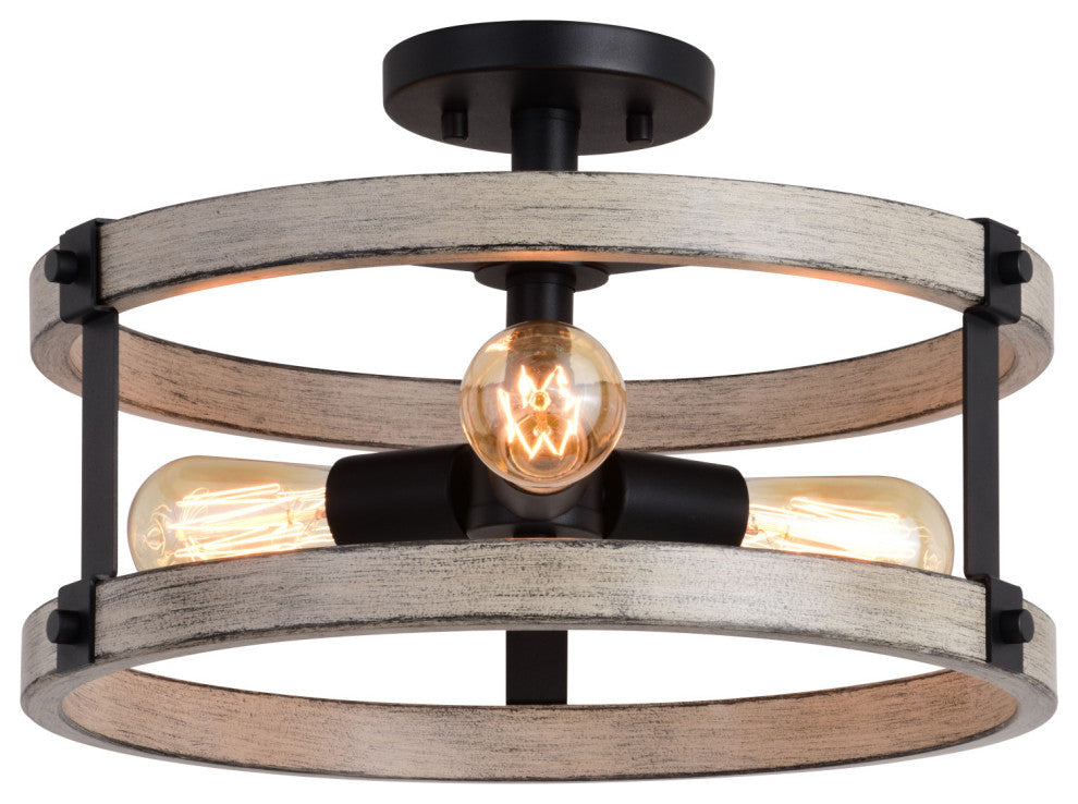 Danvers 16" Semi-Flush Textured Black and Weathered Gray
