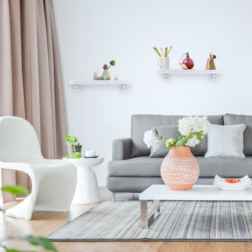 Danya B. Decorative 24" Floating Wall Decor Display Shelves, Set of 2, White