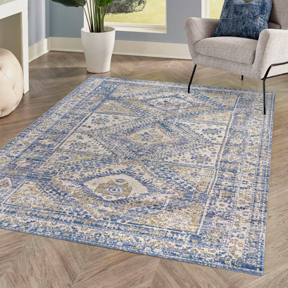 Darija Ornate Geometric Medallion Area Rug, Blue, 8 X 10