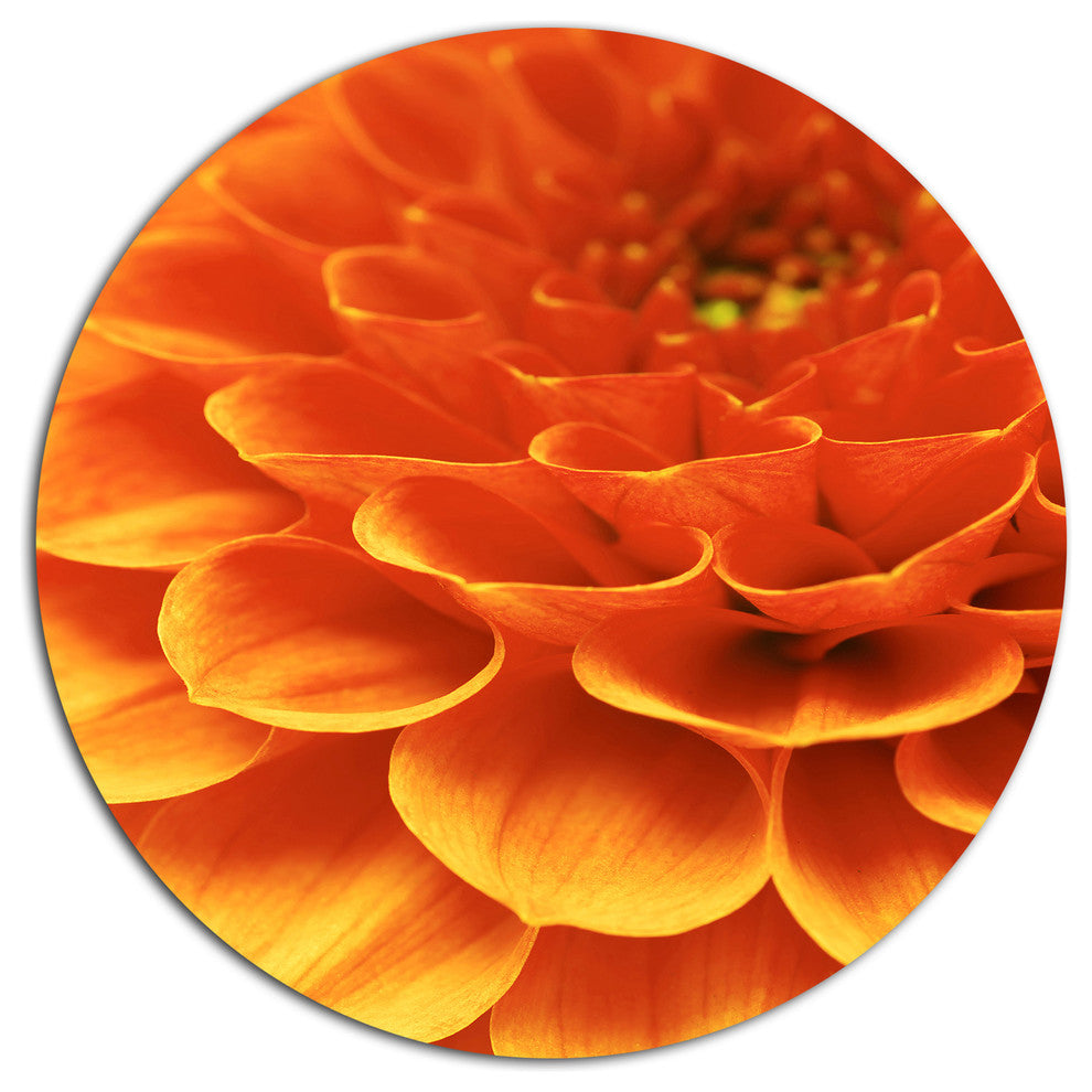 Bring Contemporary Abstraction to your home with this large Circle Metal wall art. This Dark Abstract Yellow Flower Petals Metal Artwork makes it the focal point of any room or office.