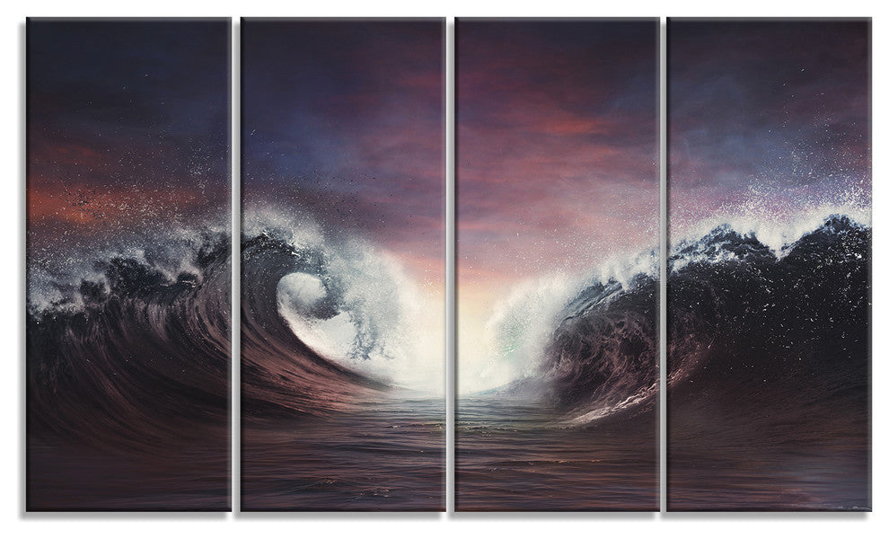 "Dark Parting Ocean With Colorful Clouds" Seashore Wall Art, 4 Panels, 48"x28"