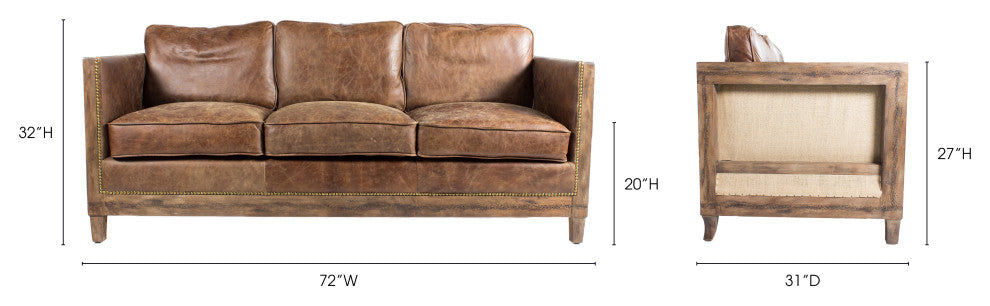 The Darlington Sofa is designed with soft grain leather in a subtly exposed wooden frame. All the old-world rustic vibes to charm your living space. You won''t be sacrificing any comfort with this cleverly sized piece, ideal for a condo or small space living.