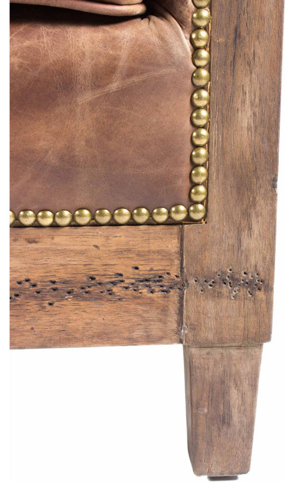 Materials Upholstery: Top-Grain Leather, Solid Rubberwood Frame, High Density Foam