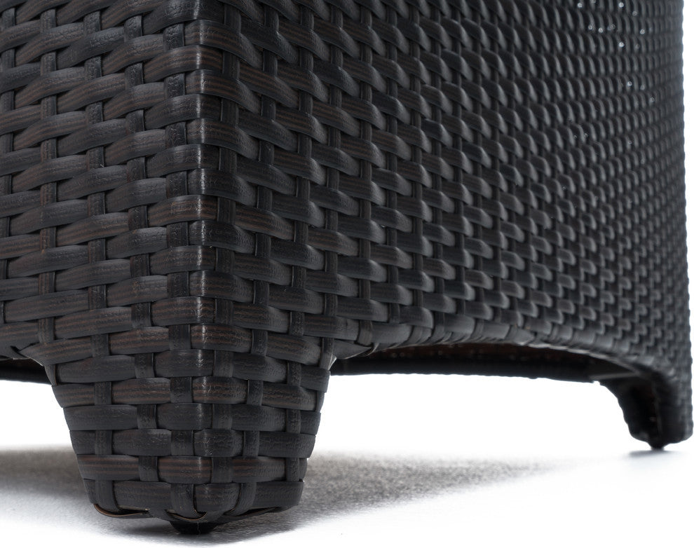 - Hand-woven SolarFast resin wicker in rich Espresso is UV, weather, and water-resistant.