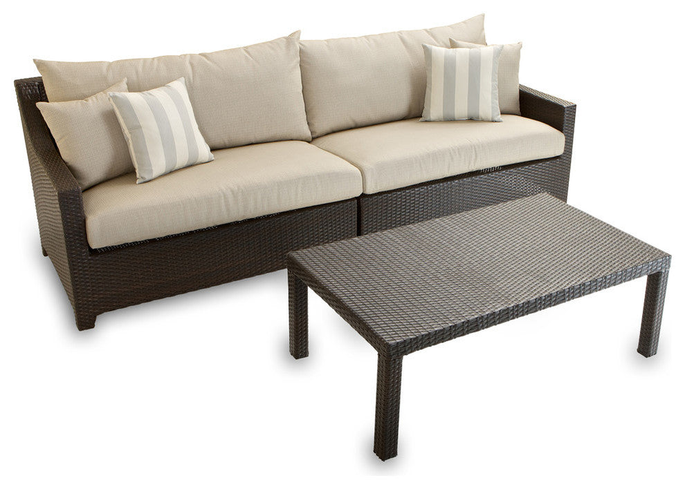You deserve the type of comfort and elegance that enhances any lifestyle. Our Deco Sofa and Coffee Table set does just that. By providing extra plush 3 layer deep seating and sturdy powder-coated aluminum frame construction, it''s the perfect enhancement for any outdoor retreat.