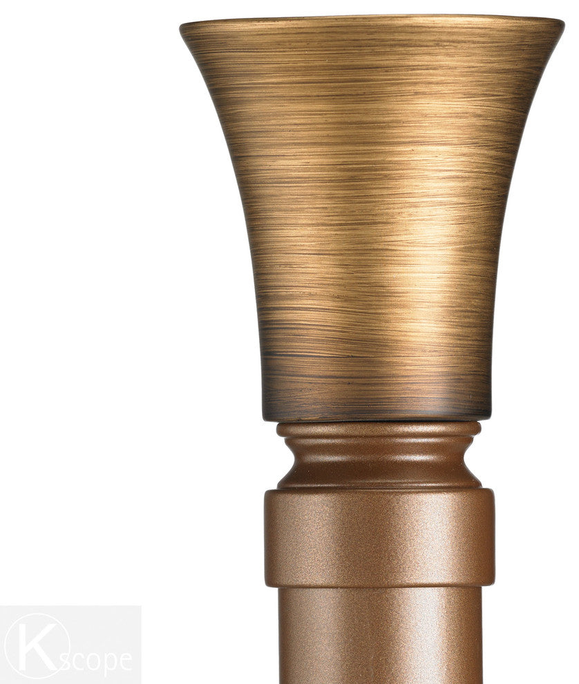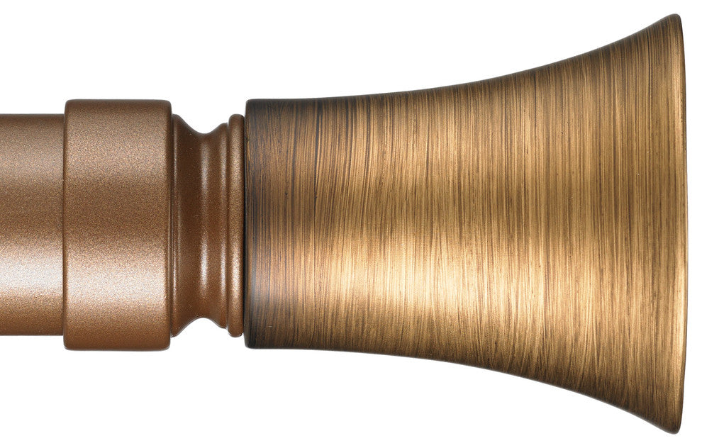 Art Decor has developed the most functional decorative traverse rod in North America. An innovative support system enables your drapes to traverse without bracket interference. Deco-Trav 2 is the first decorative traverse rod, allowing a one way draw, for patio doors. Deco-Trav is best suited for pinch pleat drapes or Wave drapes utilizing standard pin on hooks. Deco-Trav 2 is 1 1/2 inches in diameter for a descriptive presence.•Deco-Trav 2 includes, an aluminum rail, supports with a 2" projection, two finials, carriers and one baton.•All rails are powder coated with Perma Glide for the best traversing in the industry.•Wall supports project 2 1/8 inches from wall to rail.•Batons are made of aluminum and color co-ordinate with rod.•Rods longer than 96 inches come in two equal pieces with a simple, effective splicing system to save on transport costs.•Finials are made of resin and are hand painted with detailed highlights.