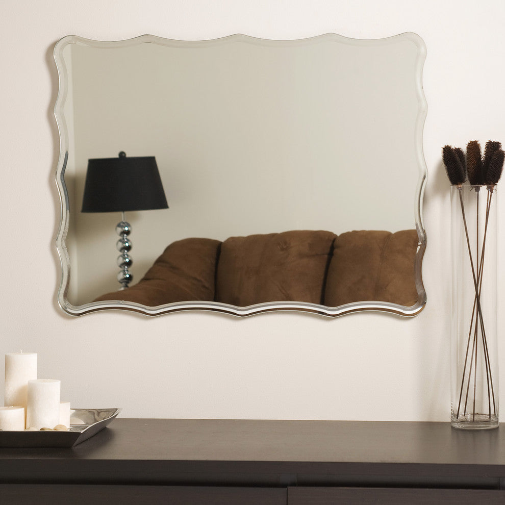One of our best sellers of all time. This stylish and super modern frameless wall mirror. Perfect mirror for your hallway, living room or bathroom. This frameless mirror has a unique shape with v-grooved polished edges. Free Shipping!