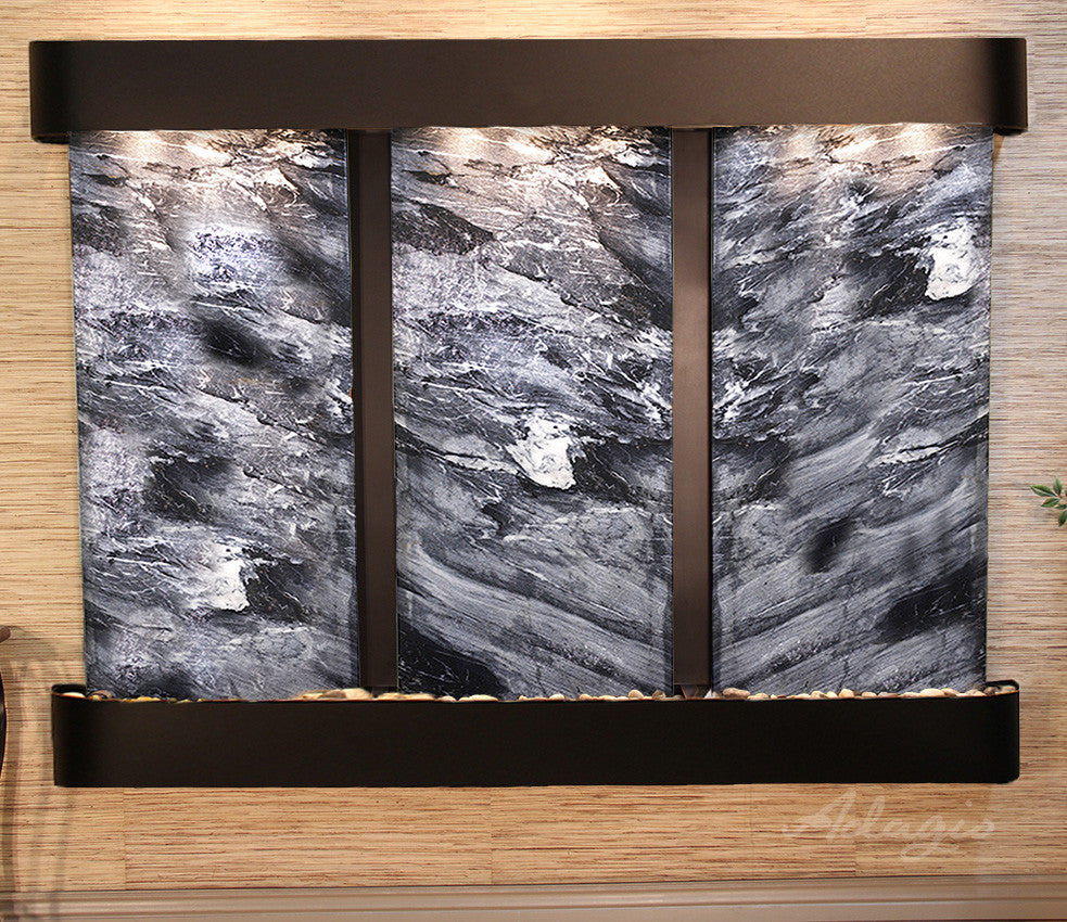 Deep Creek Falls Fountain, Black Marble, Blackened Copper, Round