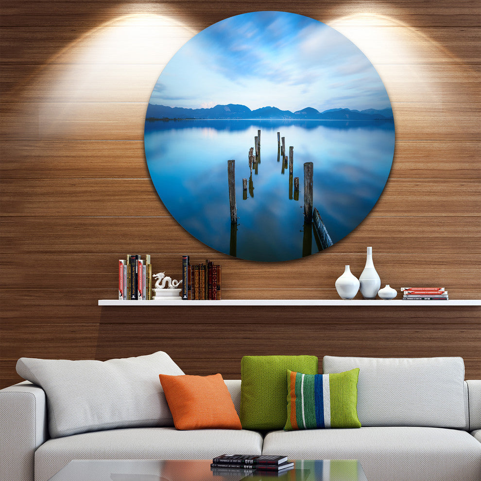 Deep Into The Sea Pier, Seascape Photo Round Wall Art, 36"