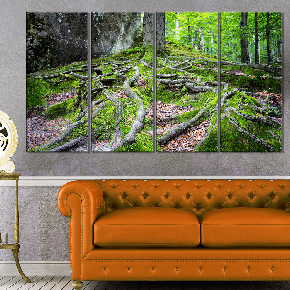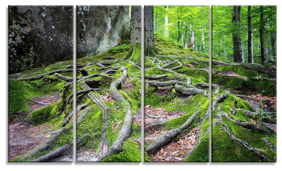 "Deep Moss Forest in Ukraine" Landscape Art Print Canvas, 4 Panels, 48"x28"