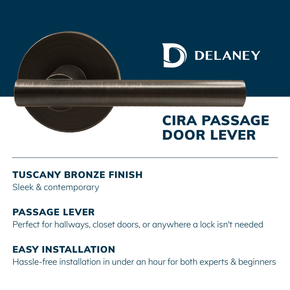 Delaney Hardware Cira Series Passage Set in Satin Nickel, Tuscany Bronze, Passage Lever