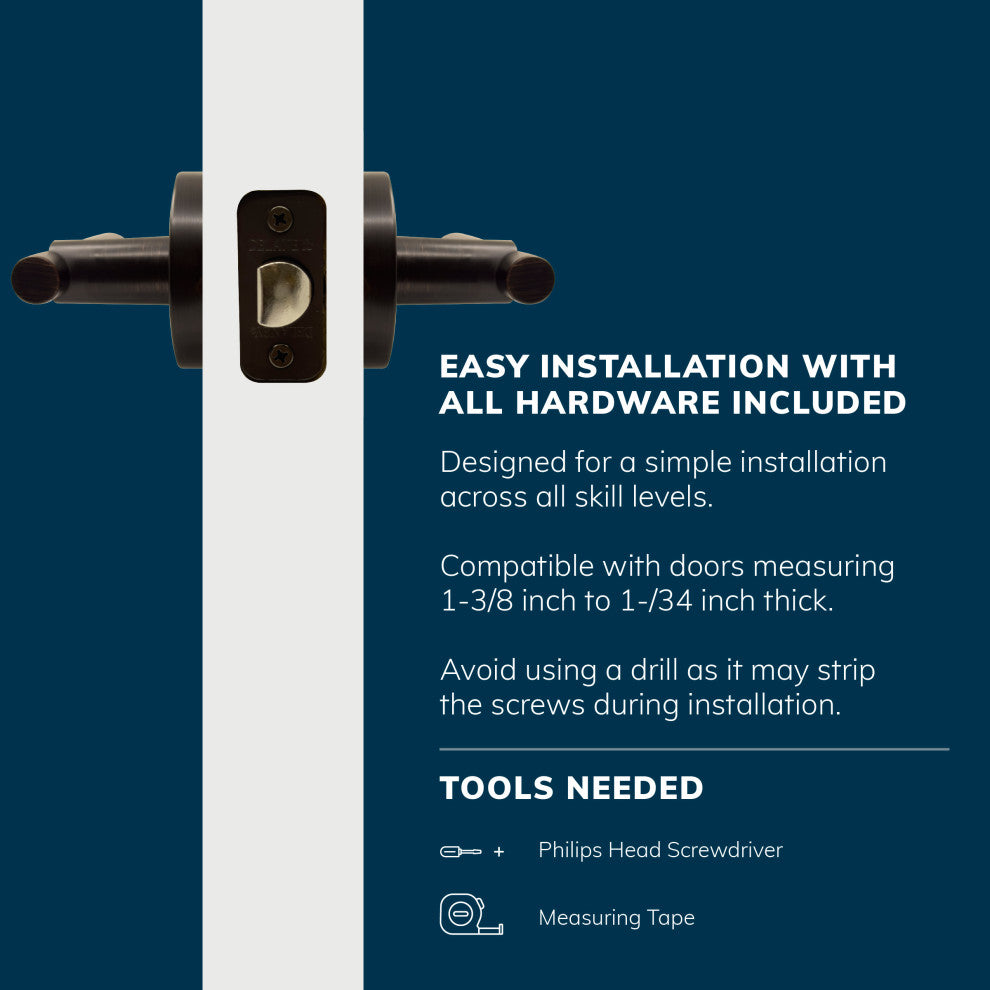 Enhance your interior spaces with the Delaney Hardware Contemporary Collection Cira Series Passage Lever Set in Tuscany Bronze. Designed for modern aesthetics, this sleek lever set provides smooth functionality and an elegant, timeless look. Its rich Tuscany Bronze finish adds a warm, rustic appeal, making it perfect for hallways, closets, and other non-locking doors throughout the home. Crafted for durability, the lever set promises easy installation on both left and right-handed doors, offering versatility and style without compromising quality. Embrace sophistication and lasting performance with the Cira Series Passage Lever Set, an ideal choice for any contemporary interior.