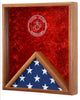 Deluxe Combination Flag and Medal Display Case. For 3x5 ft. flag. Made of solid oak wood. Highest quality BLACK crushed velvet on a removable laminate wood panel backing (with wall hangers) for easy insertion of flag, medals, awards, etc. Double strength glass front keeps your memorabilia dust free. Glass includes USCG branch of service emblem. 100% made in the USA! •  Flag not included. •