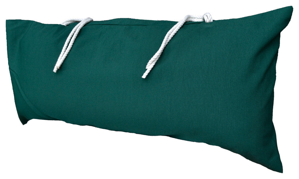 Add color and comfort to your hammock with a super soft hammock pillow. Cover is made of washable weather treated fabric, and is complete with tie-offs, for stay put results.Features:- 100% Natural Cotton Fabric- Pillow Size: 33"L x 15"W x 7" thick- Cover is made of weather treated fabric- Cover is removable- Complete with rope tie-offs- Made in the USA