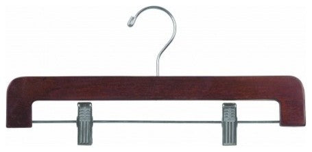Deluxe Wooden Bottom Hanger With Clips, Walnut/Chrome, Box of 50