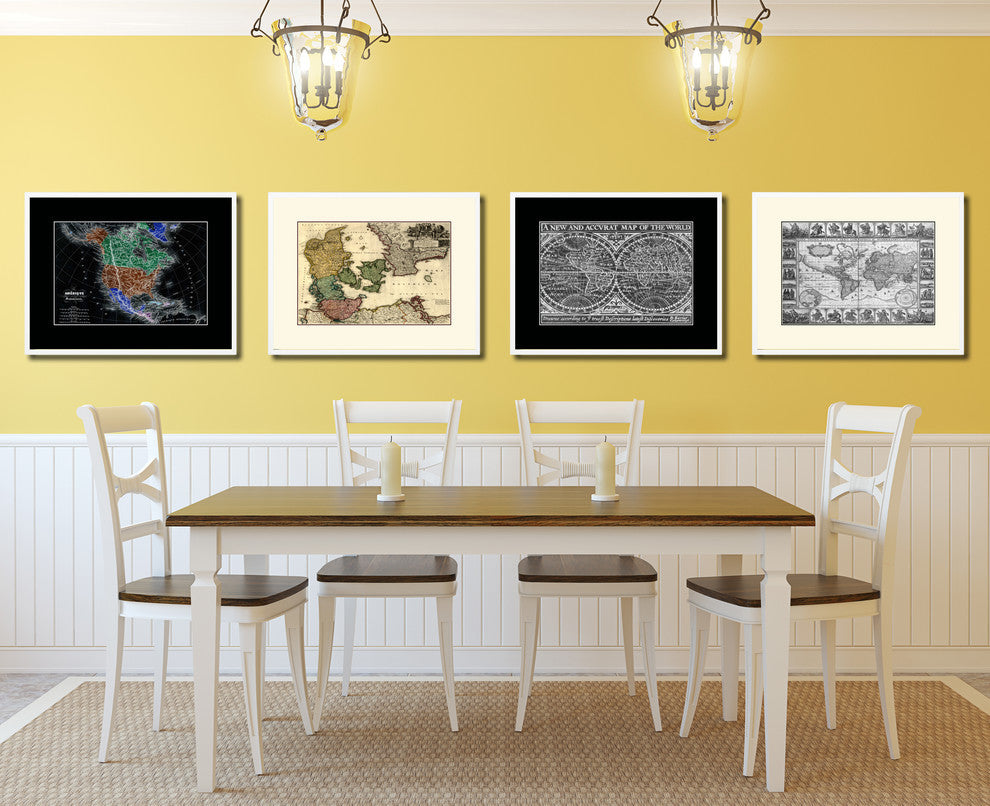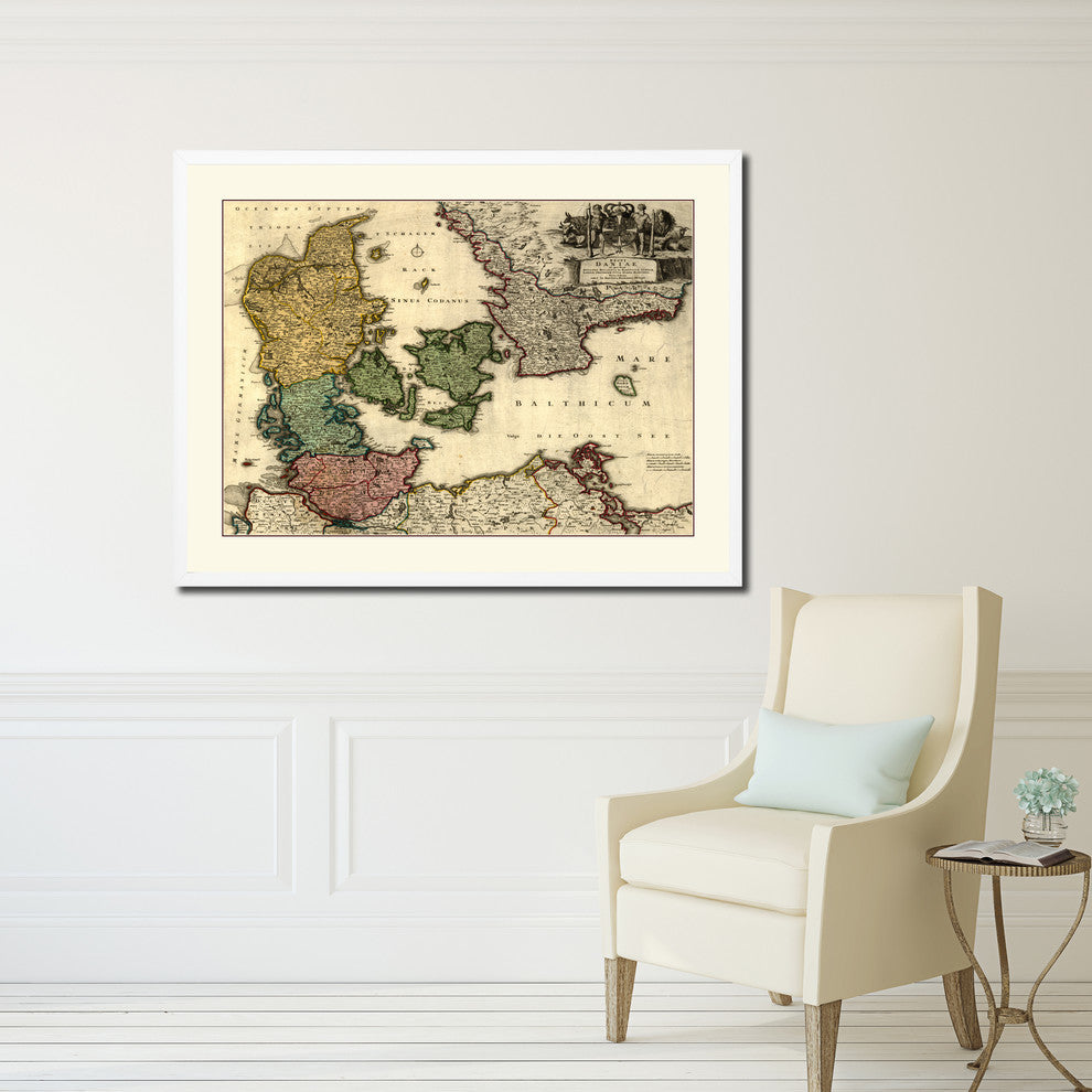 Denmark Centuries Vintage Old Map Print On Canvas With Picture Frame 28" X 37"