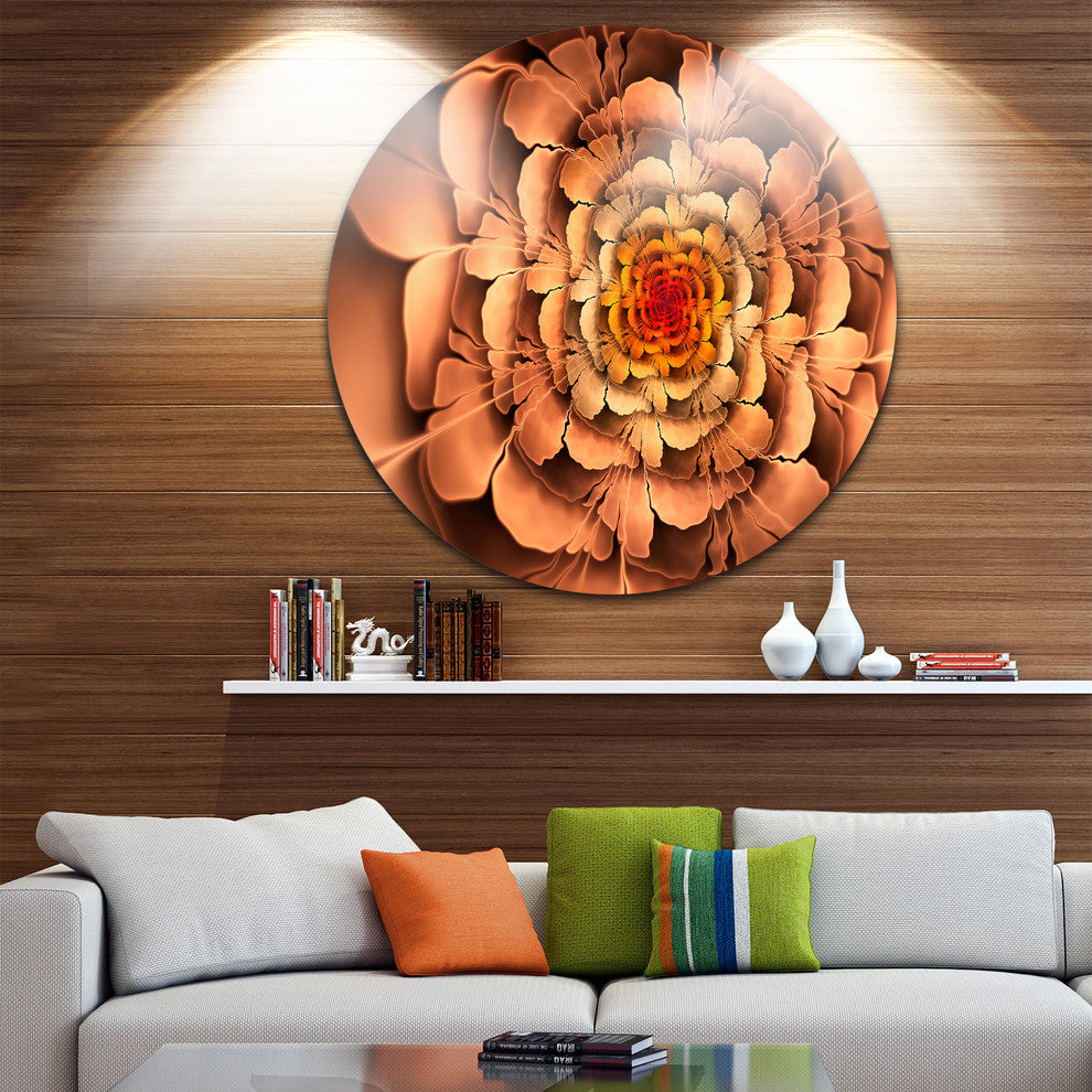 Bring Contemporary Abstraction to your home with this large Circle Metal wall art. This Dense Fractal Brown Petals Metal Artwork makes it the focal point of any room or office.