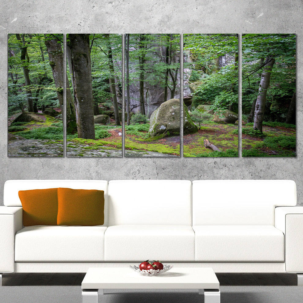 "Dense Moss Forest in Green" Landscape Art Print Canvas, 5 Panels, 60"x28"
