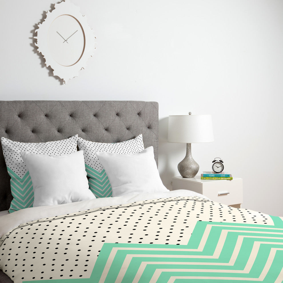 Deny Designs Allyson Johnson Minty Chevron And Dots Duvet Cover - Lightweight