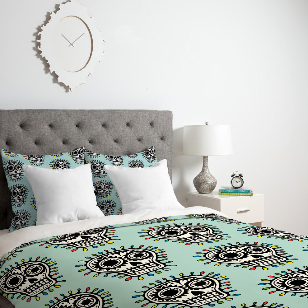 Deny Designs Andi Bird Sugar Skull Fun Aqua Duvet Cover - Lightweight