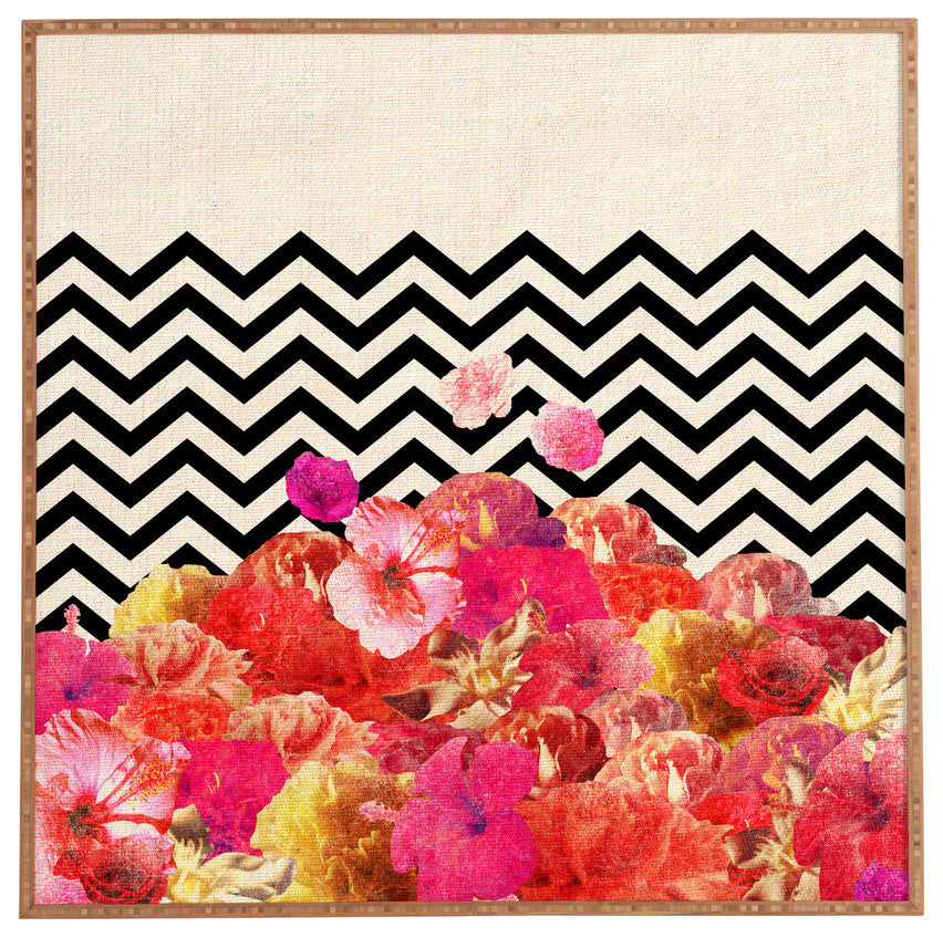 Deny Designs Bianca Green Chevron Flora 2 Framed Wall Art