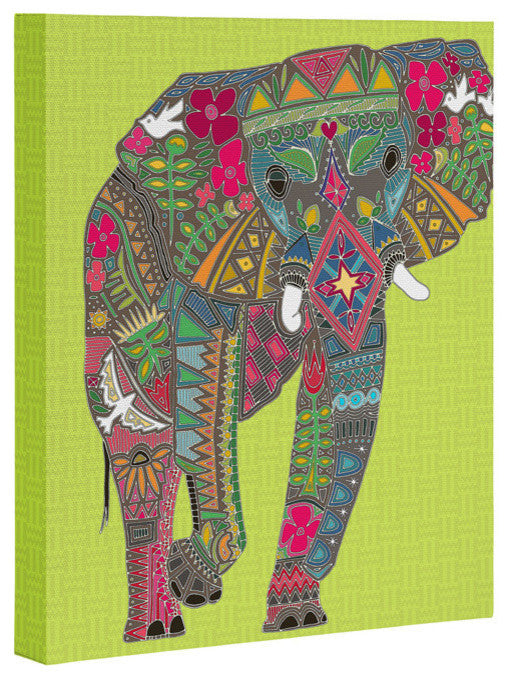 Deny Designs Sharon Turner Painted Elephant Chartreuse Art Canvas