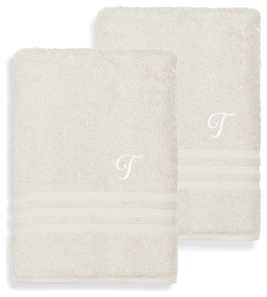 Denzi Bath Sheets With Monogrammed Letter, Set of 2, T