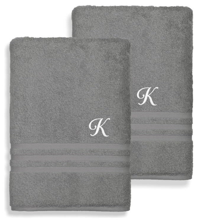 Denzi Bath Towels With Monogrammed Letter, Set of 2, K